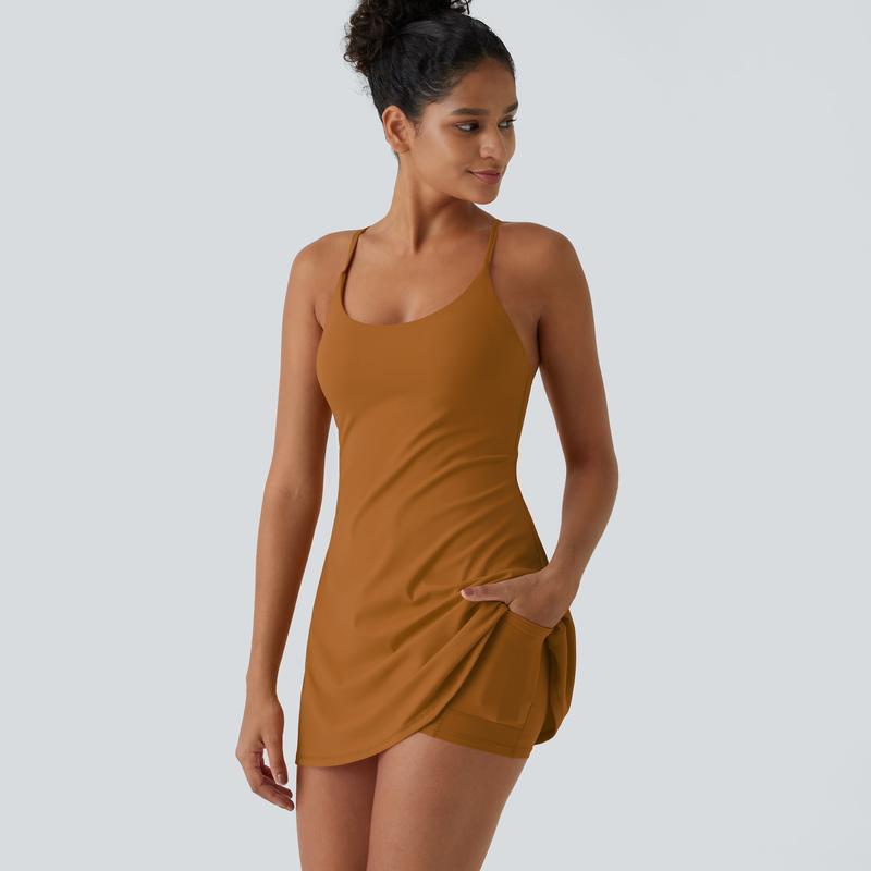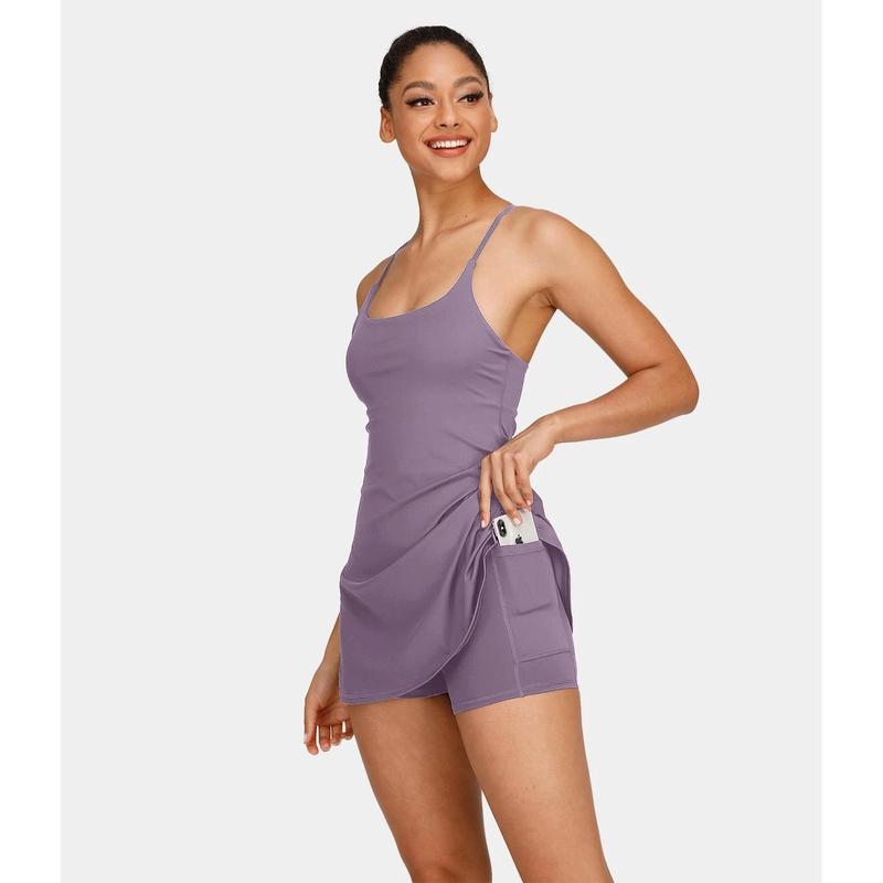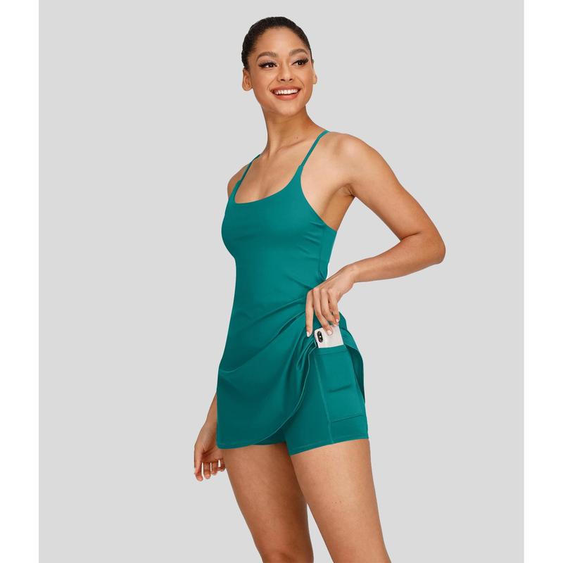Product Features·For: dance and casual activities.·Features: Built-in shorts with open back waistband for easy peezy bathroom breaks. No need to undress when you need to use the bathroom. The attached built-in shorts are easy to slip on and off. Featuring two side pockets for storing your essentials such as credit cards or other small items when you're on the go. Mini-length design that hits right at the thigh. Removable pads for customized support when and where you need it. Four-way stretch fabric offers ease of movement and durable wearability. Fabric & CareMaterials·77% nylon and 23% elastaneCare·Machine wash cold·Do not dry clean·Do not iron·Do not bleach·Wash with like colors·Turn garment inside out